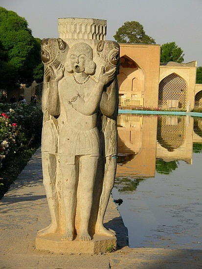 ستون در حوض مقابل عمارت، مفهوم چهلستون را القاء میکنند